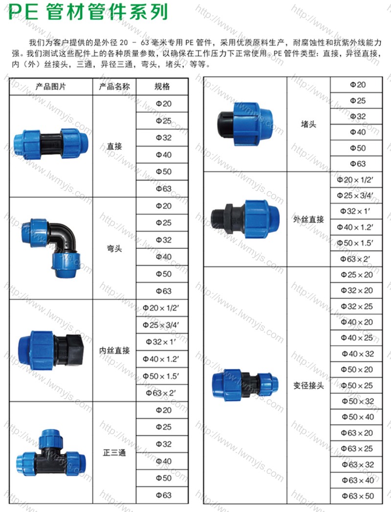 1、適用於大田灌溉、噴灌、微灌、節水灌溉工程及人畜飲水工程。 2、適用於微滴灌、飲用水、工農(nóng)業供(gòng)水係統輸水管道的(de)連接。選用優質(zhì)的塑料加工製造、無毒、無味、防老化(huà)、使用(yòng)壽命長。安裝拆卸極為方便、密封性好、強(qiáng)度高 3、產品規格齊全、變徑互換性強 用(yòng)途(tú):可快速連接PE管(guǎn)或(huò)是PPR、PVC管直接插入擰可快速方便特(tè)別(bié)是(shì)像高山地區沒有電的情況下(xià)用這個接頭很方(fāng)便的。